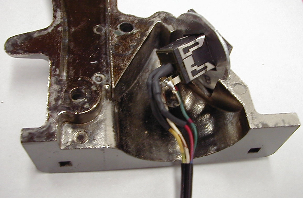 Step 5 - Wire the ConnectorCut the free ends of the four wires to the same length. Use a Molex crimp tool to connect the male terminal pins to the free ends of the wires. Insert the crimped wires into the REAR of the connector housing. The wires should be positioned as this FRONT VIEW of the connector housing indicates: Double-check your switch and connector wiring before proceeding to the next step. Step 6 - Install the LED and Button CapPosition the LED so the flat side is aligned with the white actuating arm inside the switch, and insert the LED into the socket. Here's a picture of the inside of the switch showing the white actuating arm on the right side of the picture (sorry for the poor quality picture): Look inside your switch's housing (with the white actuating arm positioned toward the right as in this picture) and you'll see a pair of molded ribs at the top inside edge of the housing, and a single molded rib at the bottom inside edge. The button cap also has a pair of molded ribs on one side, and a single molded rib on the other side. Insert the button cap into the housing such that the single rib on the button is facing up (i.e., so it aligns with the pair of ribs on the housing); the two tabs that project from the rear of the button are positioned toward the left and right. Push the cap down until it seats. You should be able to push the button down and feel the slight click as the switch engages; the button should spring back when you release it. Step 7 - Test the Button AssemblyWith the power off, connect the button assembly to the wiring harness of the pinball machine. Turn the power on, and use the test buttons to enter test mode. Advance to the Switch Edges test (T1), and verify that pushing the button registers as a closure of switch 31 (CAST). Leave the Switch Edges test, advance to the Single Lamps test (T8), and verify that the cast button flashes when you select lamp 87 (UNUSED). If everything worked as expected you can turn off the power, disconnect the button assembly from the wiring harness, and proceed to the next step. If either test failed, first check all your wiring connections on the switch and the Molex connector. If the Switch Edges test failed, verify the placement of the white and green wires and the diode across the bottom switch terminals. If the Single Lamps test failed, verify the placement of the red and yellow wires. It's possible you may have installed the LED incorrectly in the push button housing. You can pop the button cap off with a small screwdriver to verify the orientation of the LED. Step 8 - Insert the Button Assembly in the Plastic Bezel and Fender WasherBend the wires connected to the switch as shown in the following picture: Place the plastic bezel on top of the fender washer and align the cutouts in both pieces. While holding these in position insert the Molex connector through the plastic bezel side, feed the wires through the pieces, and finally snap the push button switch into place. The small metal tabs on the sides of the switch will engage the bottom of the fender washer and hold the button firmly in place. Step 9 - Insert the Button Assembly in the Handle AssemblyAssuming you did a good job in step 3 you should be able to fit the button assembly into the two halves of the handle without any problems. The wires should lead out of the end of the handle that attaches to the cabinet as shown in this picture: If the fit is too tight you'll have to make any necessary corrections before proceeding. Be sure none of the wires or the diode across the switch terminals are contacting the metal of the handle. Step 10 - Assemble the Handle AssemblyConnect the two halves of the handle using the original hardware. The Torx screws use a internal-tooth lock washer first followed by a flat washer; the blind nuts use just an internal-tooth lock washer. Step 11 - Replace the Handle AssemblyInsert the Molex connector through the opening in the front of the cabinet and replace the four carriage bolts that secure the handle assembly to the cabinet. Connect the Molex connector to the wiring harness of the pinball machine and position the connecting cable from the handle assembly so it doesn't interfere with closing the coin door. Replace the balls, the playfield glass, and the lock-down bar, and you're good to go! |