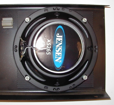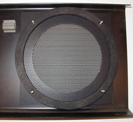 After you've verified the fit of the spacer you should paint it with flat black paint so it blends with the speaker panel. The completed spacer should look like this when placed in position on the speaker mounting studs on the speaker panel: