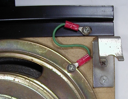 Mount Replacement SpeakersWhen you mount the replacement speakers the terminal lugs should be positioned toward the top edge of the display panel (the top is where the U-channel is mounted). Don't use excessive force when tightening the replacement speaker mounting screws. If the speaker has mounting lugs that extend from the sides of the speaker basket be sure to put some spacers (#8 flat washers work fine) between the lugs and the spacer or display panel; this way you won't distort the speaker basket when tightening the speaker mounting screws. Nylon washers are easier to use as they're not magnetic and won't be attracted to the speaker magnet; metal washers work fine but require a bit of patience to install. The left speaker should have a green-yellow ground wire fastened under the lower mounting screw closest to the edge of the panel. If a metal U-channel is used there should be a short green-yellow ground wire connecting the channel to the upper mounting screw closest to the left edge of the panel. *UPDATE PICTURES*