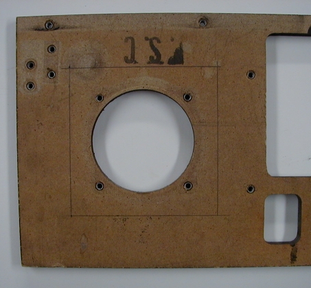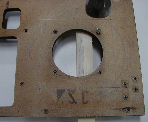 In a similar fashion, mark a 5-5/8 inch diameter circle on the rear of the display panel around the left speaker cutout. We have to enlarge the left speaker cutout by about 1/4 inch to accommodate the surround of the 6-1/2 inch speaker.